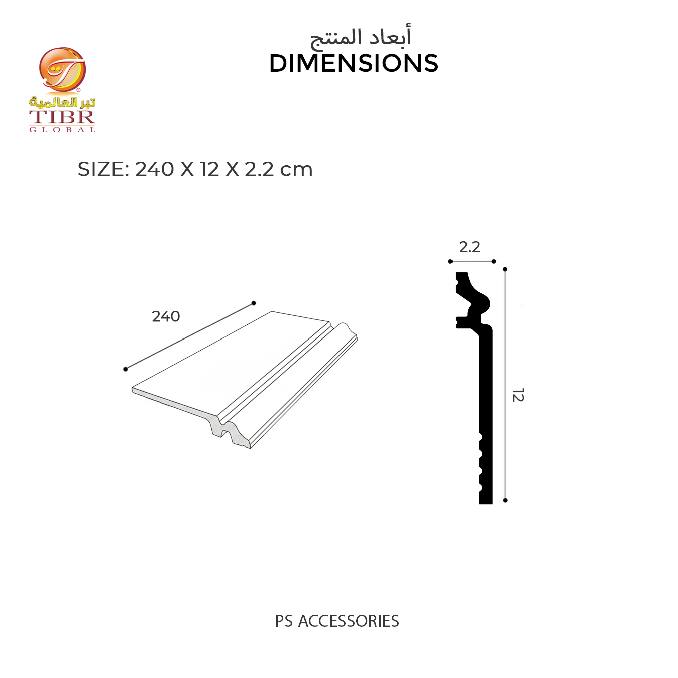 أبعاد المنتج : سم 2.2 * 12 * 240